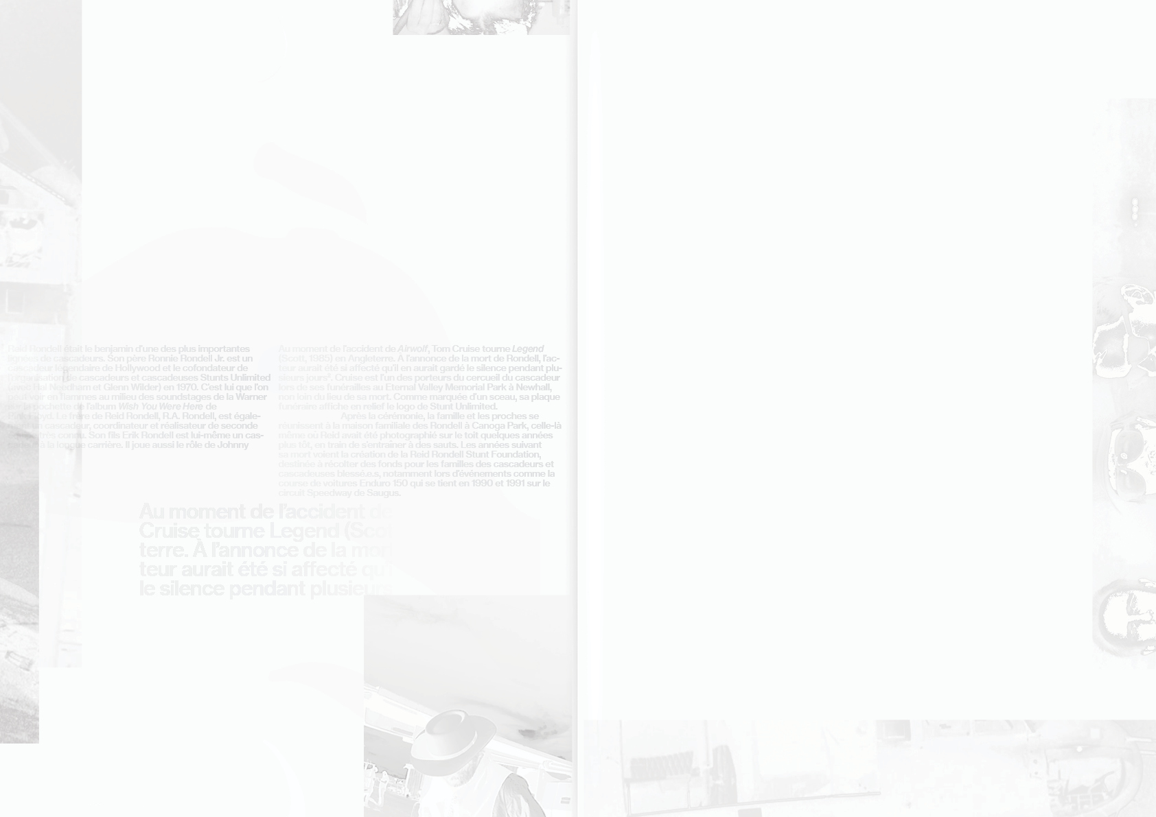 Au moment de l’accident de Airwolf, Tom Cruise tourne Legend (Scott, 1985) en Angleterre. À l’annonce de la mort de Rondell, l’acteur aurait été si affecté qu’il en aurait gardé le silence pendant plusieurs jours2. Cruise est l’un des porteurs du cercueil du cascadeur lors de ses funérailles au Eternal Valley Memorial Park à Newhall, non loin du lieu de sa mort. Comme marquée d’un sceau, sa plaque funéraire affiche en relief le logo de Stunt Unlimited.