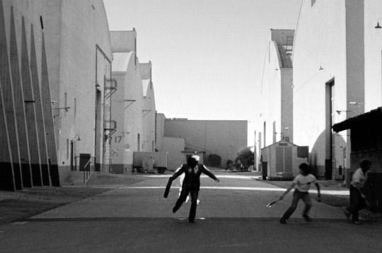 Shooting pour la pochette de Wish You Were Here (Pink Floyd, 1975) aux studios de la Warner Bros. en 1975. Image trouvée sur le site https://colecciones.tumblr.com/post/156941945110/stuntmen-ronnie-rondell-warner-bros-backlot-in